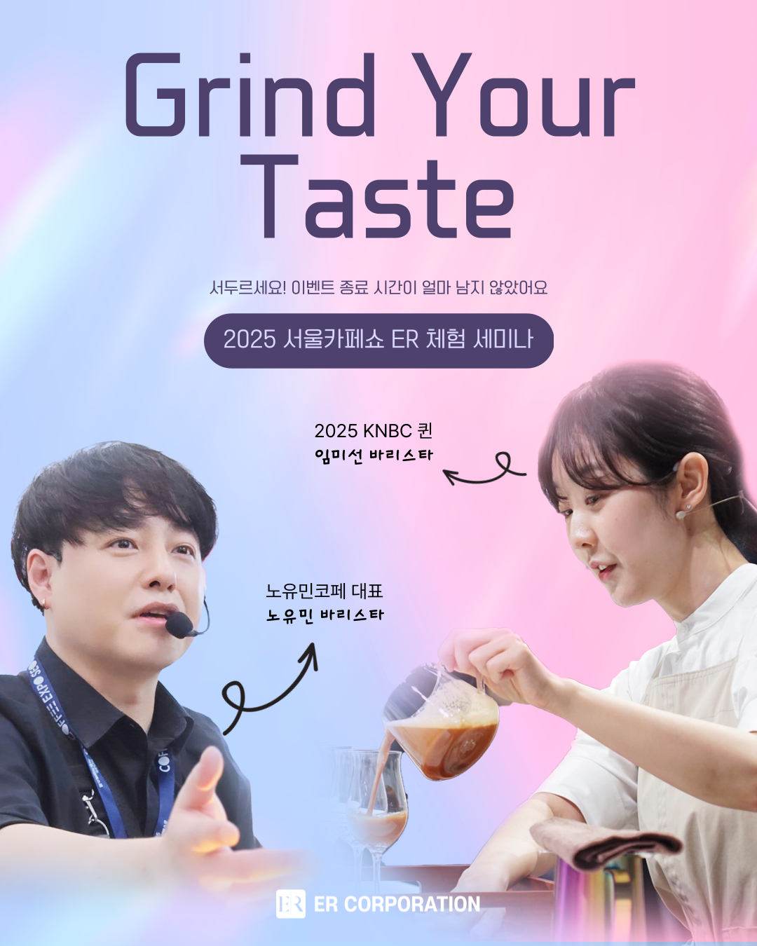 🎉 카페쇼 세미나 예약하기 64mm VS 83mm VS 싱글도즈 VS 무게기반 👉 그라인더 슬롯을 ‘돌려’ 랜덤으로 정해진 4개의 컵을 비교 테이스팅하는 참여형 커피 체험 세션! ☕ ⠀ 🗓 진행일정 11.19(수)~22(토) / 1타임 14:00~14:30 | 2타임 14:40~15:10 👩🔬 진행: 19~20일 임미선 바리스타 / 21~22일 노유민 대표 ⚙️ 세팅: 라심발리 M200 ⠀ 🎫 참가자 전원 굿즈 증정 (총 64명 한정) 예약은 이알코퍼레이션 홈페이지에서 가능합니다! ⠀ ⚠️ 예약 후 불참 시, 추후 이벤트 참여가 제한될 수 있습니다.