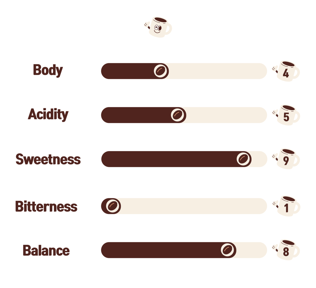 전체적으로 느껴지며 커피를 달달하게 표현해 줍니다.