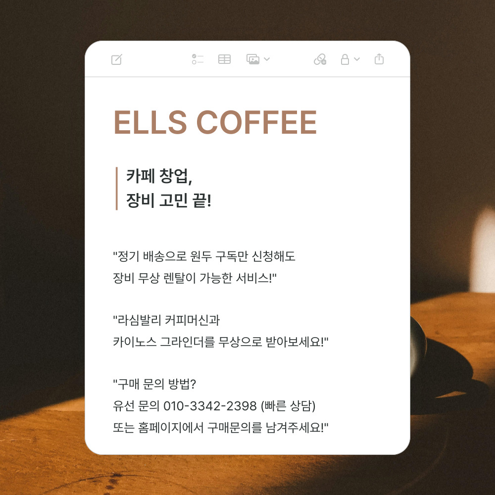 원두 정기배송으로 ELLS COFFEE와 함께 만날 수 있는 파격적인 조건의 프로모션!!
